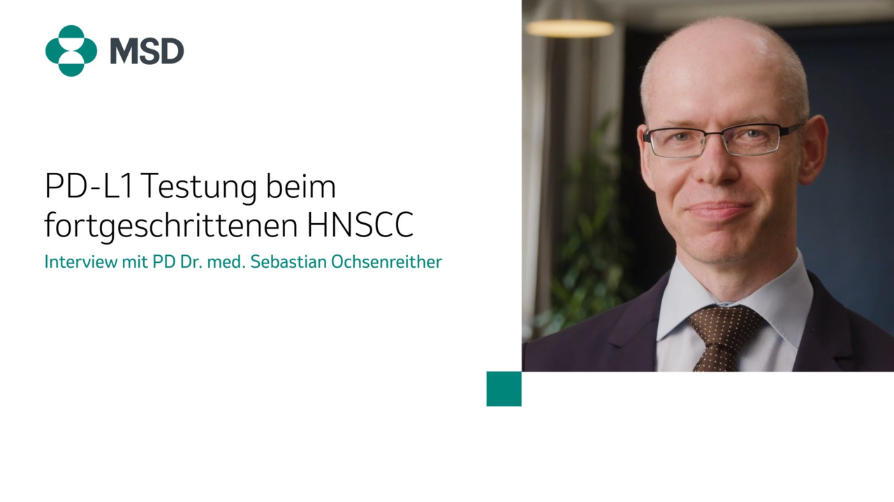 In diesem kompakten Interview gibt Dr. Sebastian Ochsenreither einen Überblick zur Bedeutung der PD-L1-Testung und wie sie Einfluss auf die Behandlung des metastasierenden oder nicht resezierbaren rezidivierenden HNSCC* nehmen kann.