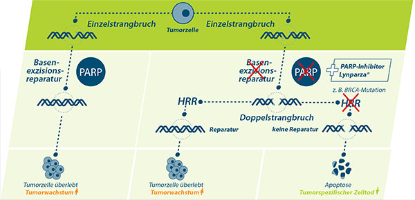 Lynparza® (Olaparib) wird angewendet als Monotherapie für die Behandlung von erwachsenen Patienten mit metastasiertem kastrationsresistentem Prostatakarzinom (mCRPC) und BRCA1/2-Mutationen (in der Keimbahn und/oder somatisch), deren Erkrankung nach vorheriger Behandlung, die eine neue hormonelle Substanz (new hormonal agent) umfasste, progredient ist.